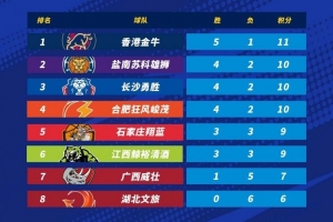 NBL积分榜:香港延续连胜5胜1负独自领跑 湖北文旅6连败垫底